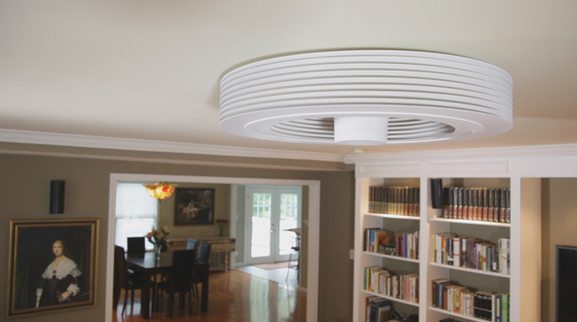 吊式風扇要你坐在風扇的範圍下才可享受到涼風,對坐在風扇以外範圍的人沒有太大幫助。Exhale Fans 就嘗試解決這個問題,設計沒有扇葉的風扇,改為轉動一個天花板上的圓盤來產生層流運動,使空氣向外並沿牆向下移動,即是空氣可均勻地環繞整個房間流動,當空氣分子於房間流動了一次後會返回風扇的中間。它可調節整個房間的溫度,大家不用爭坐在扇葉之下啦!
