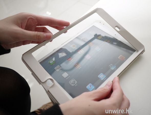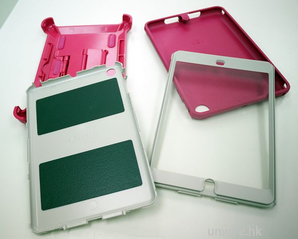 Defender Series 為 iPad mini 提供 4 層的保護,最底層有一個保護殼,避免機身被刮花或損毀。面層是保護 iPad 屏幕的透明幕,平時在用平板電腦時把它弄跌,最怕就是屏幕著地,撿起時的心情會特別緊張、激動,因為那個時候的屏幕是最「赤裸裸」的,但這個保護殼可以透過保護殼的透明幕使用觸控屏,24 小時不用開 cover 都可使用,使前後都有適當的保護。而第三層是一個軟保護套,軟硬兼備保 iPad mini。第四層是可隨意用作面或底的硬殼,要使用 iPad mini 時可把它嵌到底部,使用後可把它蓋上面,雙重保護屏幕。四層保護使 iPad mini 絕不怕一般跌撞。