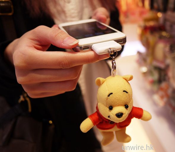 好多朋友都有在的手機耳機位置有用防塵塞,但比較少人會照顧到充電位置。Winnie the Pooh 充電位置防塵塞可以幫你杜絕塵埃,適用於 30- pin 連接頭的裝置,不但可以防塵,而且可以當電話繩,裝飾一下單調的手機。以下有更多資訊: