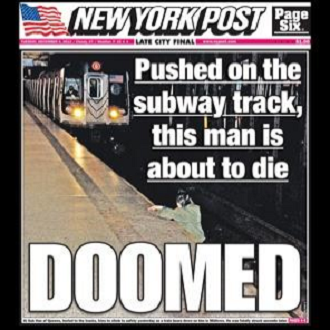 12 月 4 日的 New York Post 封面刊登了一張十分惹人爭議的照片,一個男人在鐵路上被地鐵列車撞到前掙扎嘗試返回月台,結果沒有成功,被列車撞斃。這張照片令人毛骨悚然,不只因怕到生命消逝前的一刻,很多網民覺得令他們更毛骨悚然的是攝影師只顧拍照,沒有及時救人。