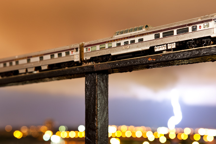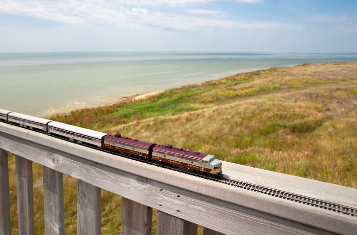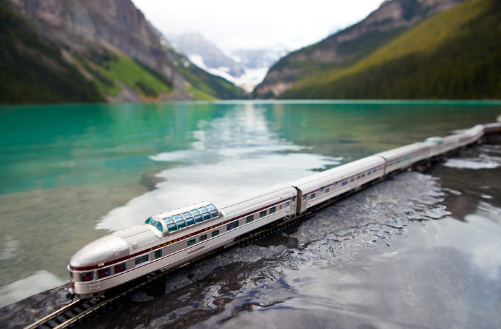 不少小男孩都喜歡收集模型火車,當他們由小男孩變成大男孩,仍舊心愛模型火車,但不少男生多了一項愛好,就是攝影,於是不少男孩都造出模型場景為火車拍照。但攝影師 Jeff Friesen 就用真實的場景為小火車模型拍一輯照片 “The Canadian: Ghost Train Crossing Canada”,在加拿大的幾個優美的戶外地方拍下模型火車,有一些照片完全看不出火車只是迷你模型,十分逼真。
