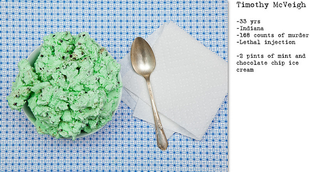 Timothy McVeigh 奧克拉荷馬城爆炸的主犯,導致168 人死亡,死前要求了 2 品脫的薄荷巧克力屑冰雪糕。