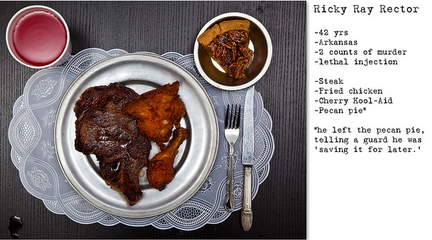 Ricky Ray Rector 夜店槍殺了一名工作人員及一名前來談判的警官,他要求了牛排、炸雞、櫻桃汁以及胡桃派。但最後無吃胡桃派,並說 “saving it for later”。