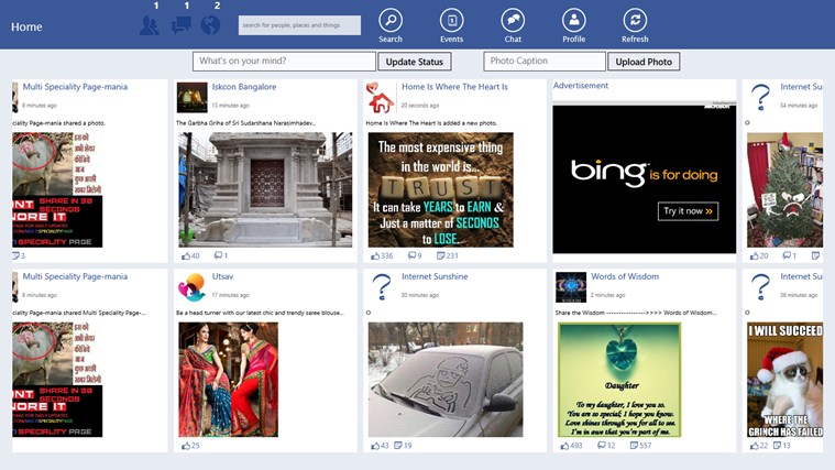 Microsoft Windows 8 開始加入了 Windows Store 設計,令一般應用也像手機 App 方式般使用。日前 Windows Store 便出現了 Facebook App,不過並非官方出品,但就使用了 Facebook 的名字及圖案。