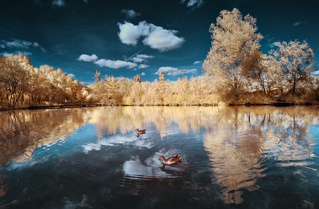 好多人沉迷以紅外線攝影的方式拍攝風景,可以拍出超現實的相片。法國攝影師 David Keochkerian 就用紅外線相機拍了一輯超美的風景照,把綠葉變成金黃色和銀白色,景致淒美莊麗。 完全分不清季節、氣候,效果不真實,表現出一種獨特的美感。有興趣可在 Flickr 和 500px 網頁把到更多他的照片。 來源: http://www.flickr.com/photos/keochkeriandavid/ 來源: http://500px.com/davidkeochkerian?page=1
