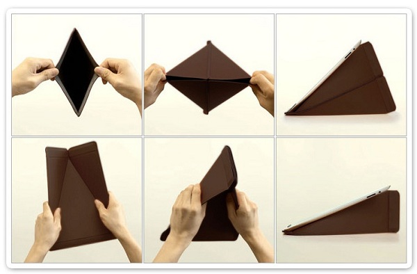它的變身設計獲得 reddot design award 設計獎項,外層以皮革設計,內層物料柔軟,可以好好保護大家的 iPad 或 iPad mini。用家想用 iPad 時就把它從保護套拿出,然後保護套可折成 2 款不同高度的 iPad 支架,神奇方便,設計簡單但絕不平凡。iPad 的版本可折成 22° 和 45°,前者適合觸控屏幕,後者適合睇片;iPad mini 的版本則可折成 20° 和 40°。