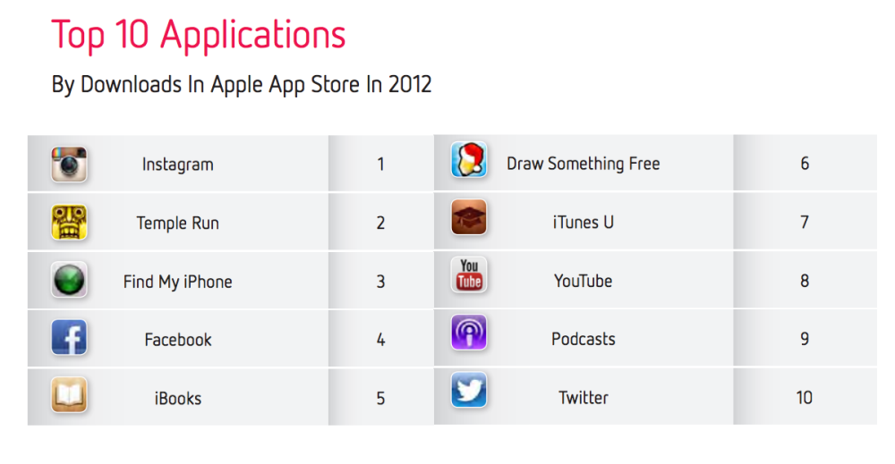 至於最受歡的 App 比較而言,最多人下載的是 Instagram,難怪 Facebook 也要將它收歸旗下。