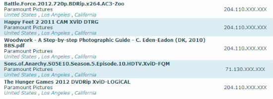 根據記錄 BitTorrent 監測公司 Scaneye 的資料顯示,在追查 IP 地址源頭後,發現不少荷李活電影是由電影公司內部發出,Paramount Pictures、Warner Bros、Sony Pictures、20th Century Fox、Walt Disney 等多間大電影公司均榜上有名。除了電影外,也有部分電視劇也是由電影公司內部流出。