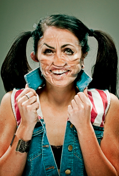 小時候試過把臉貼成滑稽的模樣嗎?攝影師 Wes Naman 去年聖誕節跟助手玩了這個小遊戲,令他有個主意,就是要模特兒用膠紙貼著臉拍照,這輯照片名為 “Scotch Tape”,就像小朋友玩遊戲一樣,模特兒臉都被貼成奇怪的模樣。