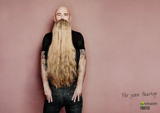 最近見到廣告公司 Publicis 為 Garnier Fructis 的護髮產品拍攝了 1 輯廣告相,宣傳她的產品男女都適合使用。第一眼看的時候,大家可能以為是在拍攝 1 個留著長鬍子的男人,但其實每張照片中都有1 個女性,背對鏡頭面向男人站著,騙到大家了嗎?這輯宣傳照吸引了不少人的注意呢! 來源:GUTE WERBUNG