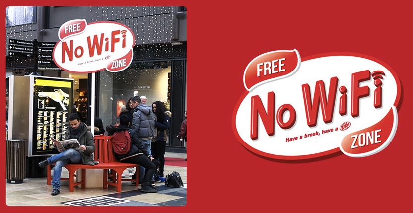 想出這個古怪概念的,是主張「鬆吓!唞吓!KIT KAT 吓!」的 Kit Kat 朱古力,他們於荷蘭設置了 1 個免費的 No Wi-Fi Zone,在方圓 5 米範圍內,所有訊號都會被阻隔,讓人可以暫時不受電郵、網絡更新、Facebook Like 等等騷擾,邊吃 Kit Kat 邊讀報看書,或與好友聊天。其實要好好鬆吓!唞吓!遠離網絡的話,大家只要忍心將手機或平板收起,甚至調校至飛行模式就是了,但又有多少人願意暫時放下手機和平板,讓自己鬆吓唞吓呢?