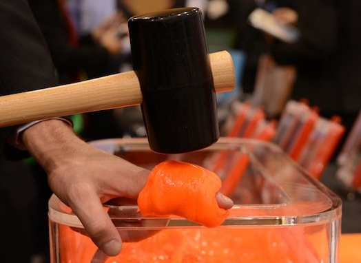 好多時經過測試會讓你在買產品時更有信心,一間公司 Tech 21 宣傳新保護套的代表就做了一個令人驚訝的測試,他站在一桶橙色的黏性物體旁,拿起一小部分軟軟的黏性物體 (如泥膠) 包裹自己的手指,然後用槌子狠狠的打下去,手指當然完好無缺啦! 這軟軟的物體能吸收撞擊力,Tech 21 就用了這物料造保護殼,相信大家對它的保護功能都有信心,不過小妹好奇這樣的物料應該可有更大的發展吧?不知道將來可會用它製車、電單車頭盔等呢。 詳情: Pop Sci