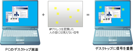 要從手機或平板上取得電腦上的檔案,大家可能會想到 FTP、Dropbox 等應用,但對於一般用家來說仍然不夠直接,並且需要一定的設定才可以做到。富士通研發的屏幕資料交換技術,可以將部分資料如 IP 地址、Wi-Fi 的 SSID 等轉化成人眼看不見的圖像,並嵌入到電腦畫面內,只要透過手機上的鏡頭擷取電腦畫面上的特定區域,便可自動下載檔案。