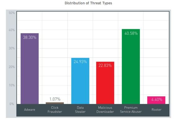智能手機及平板的普及,令 Android 的市佔率愈來愈高,但同時間惡意應用也隨著普及率而增加。根據防毒軟件公司 Trend Micro 的最新報告指出,過去一年 Android 的應用威脅大幅成長,已變成了一個極度容易被攻擊的平台,比起過往 Windows 易受攻擊的速度增長率更高。