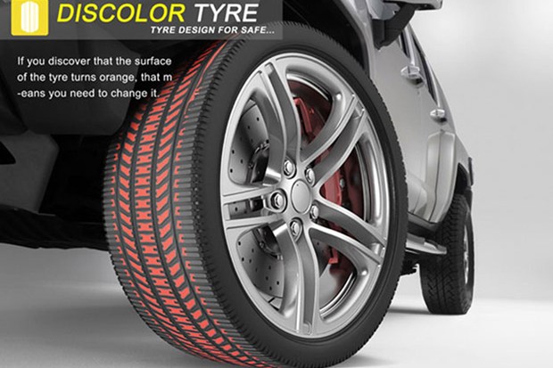 定期換胎是駕駛者的責任,但每天開車前先檢查輪胎坑紋深淺,相信不是每個駕駛者能做到,要避免因輪胎失去抓著力而釀成意外,2 名華裔設計師想到了個簡單但實用的新設計。 2 名曾獲 Red Dots 概念設計大獎的華裔設計師高豐林和周步毅 (譯音),設計了嶄新的 Discolor Tyre,將輪胎的內層以鮮橙色取代原來的黑色橡膠,外層則沿用現時的黑色橡膠,當輪胎磨損時就會露出橙色的部份,亦即是車主需要更換輪胎之時。Discolor Tyre 的橙色內層,亦讓車主更易發現輪胎可能出現的輕微破損。2 名設計師估計輪胎大約行走 19,000 公里,顏色內層就會暴露出來。 輪胎這類物品安全要求十分高,在正式投產前需要大規模的測試,期望這些 Discolor Tyre 能早日上市,方便一眾車主。