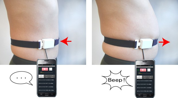 這名為「Abstrap」的減肥腰帶透過與 iPhone 和 Android 智能手機連接,當腰帶扣因腰部變粗而鬆開,手機就會發出響聲和震動。另外 Abstrap 亦會將用戶進行腰部鍛鍊運動的時間,透過專用 App 進行記錄。