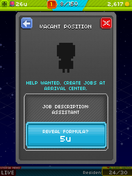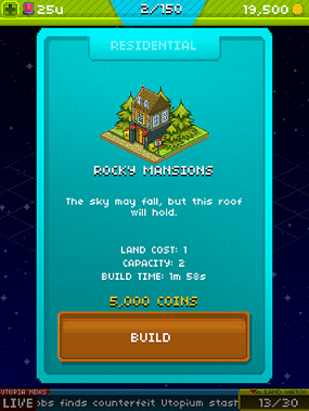 有市民就要興建住所,要有足夠的住所才可收納更多不同行業的人才。放心,遊戲之內樓價不會太貴,大家可隨便興建,不過需要時間,如果大家不想等可扣除「u」令進行中的工作立即完成,但不要過分使用「u」,因大家原有的「u」並不多 (想多點「u」就要付真錢購買)。
