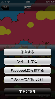 右二是加上月曆的選項,使大家在 lock screen 都可以睇月曆,方便而效果又不算太花。最右邊的選項可讓你選擇把桌布儲存在手機內,上傳至 Twitter、Facebook 及查看推出這個 App 的公司的商店。