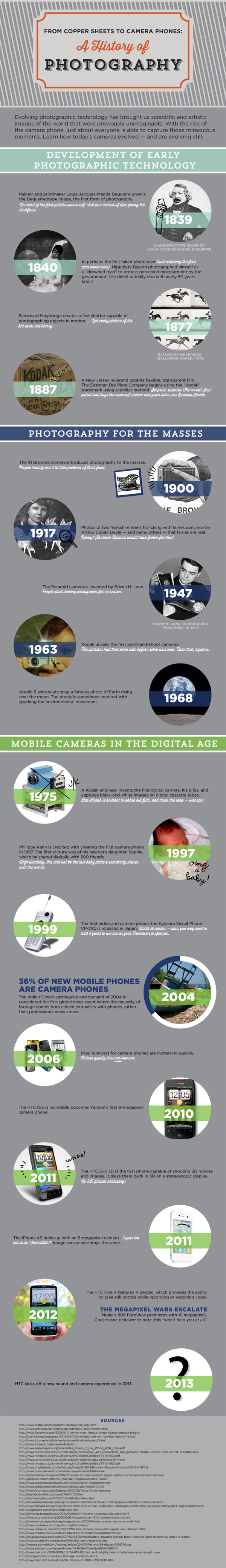HTC 於月中產品發佈會發表新旗艦手機 M7 是公開的秘密,但當中規格和賣點則未有太多資料曝光,但日前 HTC 就在官方網誌發表了 1 幅名為「A Brief History of Photography」的 Infographic,當中不但拿近代的攝影開玩笑,亦提到其他品牌的不濟,似有意利用將發佈的 M7 單挑 Apple 和 Nokia。