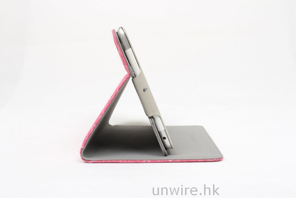 Anywhere-M 配有吸附前蓋,跟原廠 Smart Cover 一樣提供自動休眠功能。另它有支架功能可調校至多個角度,睇片、打字等都十分方便。Anywhere-M 有多款顏色選擇,有些顏色的紋理會比較突出,有些則比較低調,更有不少姊妹最愛的粉紅色,男女合用。