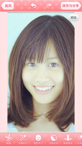 手動美容可著手於其中 1 個美顏效果,分別可加入美容特效、磨皮美白、去斑、瘦面、去黑眼圈、放大及亮眼的功能,好容易就可以令皮膚變靚,改到變成第 2 個樣都得,而放大眼睛效果神奇,但小心放得太大使看起來像外星人呀!