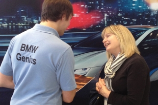 BMW 早前推出「BMW Genius Everywhere」計劃,年青的 BMW Genius (大部份為剛畢業的大學生) 將會手持 iPad,在陳列室內向顧客介紹新車的資料和特點,但不會牽涉銷售過程。北美的 BMW 希望在 2014 年初推出 i3 電動車款時,能有更多的 Genius 參與介紹和推廣,解答顧客的查詢和提供技術支援,一如 Apple 的 Genius 一樣。有關計劃早於去年已在英國幾間大型 BMW 陳列室試行,其他汽車品牌如 Lexus、Cadillac 都有類似計劃,但就沒有如 BMW 般稱呼推廣員為 Genius。