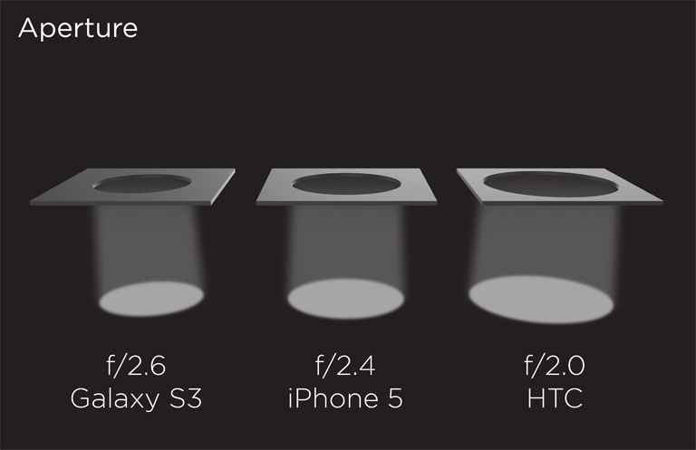 HTC One 採用的是 UltraPixel 技術,雖然只是 1/3 吋大小感光元件,與一般的手機採用 1/2.5 吋至 1/3.2 吋相差不遠,但其像素較低,只有 400 萬像素,目的是令在接近的感光元件大小下放置更大的感光晶體。UltraPixel 採用的是 2µm x 2µm 大小的感光晶體作為一個 Pixel 去處理,比起傳統的感光元件將更多的感光晶體「塞入」到空間有限的感光元件可以吸引更多光源,唯一缺點是可放置的感光晶體有限,以較低解像度作折衷。