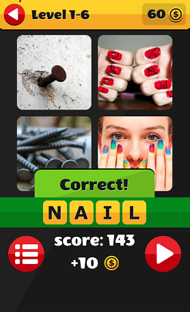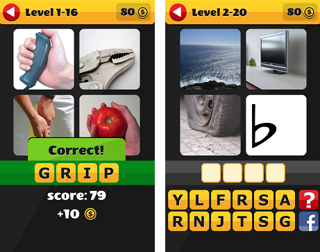起初遊戲只要你估簡單的字,到高級少少就已經要細心考慮一下才知 4 張圖到底想表示什麼,究竟應該用什麼字,可能要問朋友,這個 app 都鼓勵大家有解決不到的難題時,於 Facebook 上跟朋友分享一齊諗。這是免費 app ,可以跟朋友一起估估下。