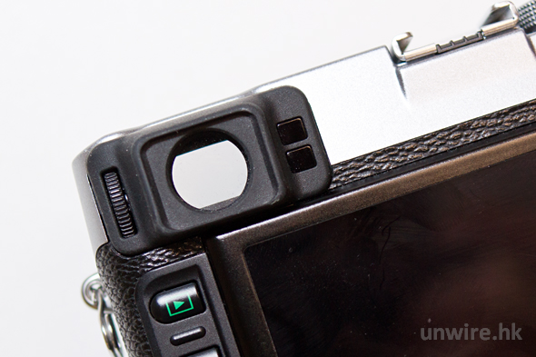 後方的觀景器右邊加了眼部感應功能,可自動切換觀景器與 LCD 的畫面顯示。
