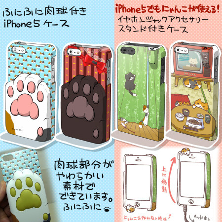 自從 iPhone 5 將耳筒插孔置於手機底,不少防塵塞的設計都不再適用,Niconico 貓的設計師針對改動,重新設計一系列的小貓防塵塞,搭配專用手機殼,在使用免提或耳筒時,可將防塵塞插在手機殼專用插孔,避免遺失。另外設計師亦準備了貓咪腳掌肉球 iPhone 5 手機殼,讓喜歡貓咪腳掌肉球那獨特手感的朋友,能夠過足手癮。上述的產品將會在 5 月東京舉行的 Design Festa 開售。