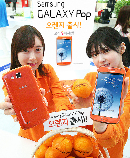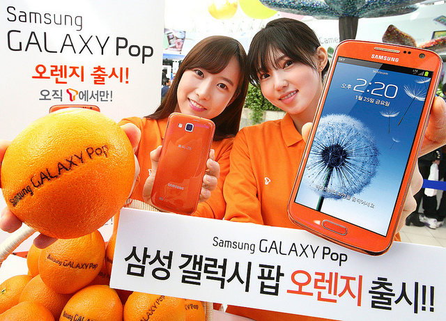 智能手機的機身顏色被黑、白、銀佔據多年,年青人開始嫌悶,生產商於是陸續推出不同顏色搶客。以韓國為例,電訊商 SK Telecom 於去年售出的鮮色外殼手機就超過 100 萬部,於是繼年初推出紅色的 Galaxy S III 手機後,日前再推出針對年青人市場,推出搶眼節日橙色 (Festival Orange) 的 Galaxy Pop 手機。