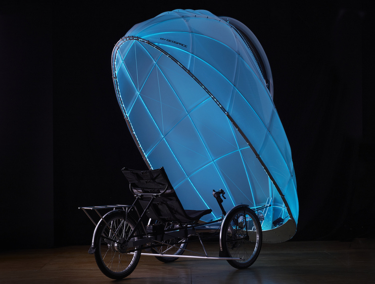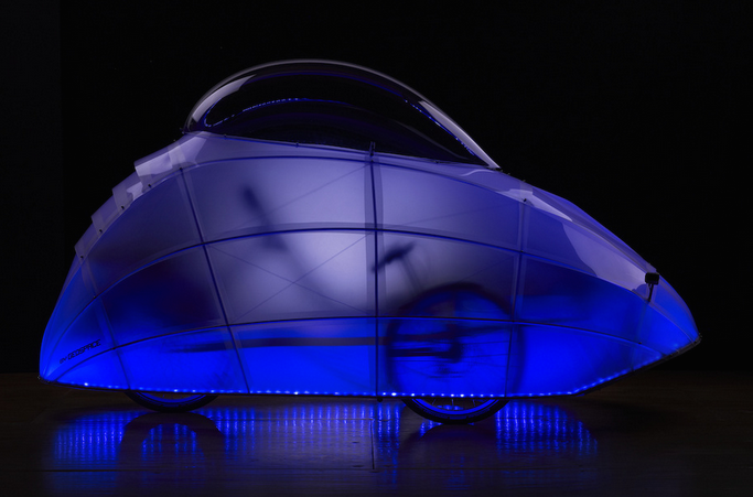下圖的車並不是萬勝節主題的產品,雖然它的外形有點搞笑,不過其實它好細心的。它叫 FireFly,由 GeoSpace Studio 創作,是一輛橫臥式三輪車,比一般的三輪車安全,因為它外面有一個裝上 LED 燈的圓罩,令它外形像科幻片中的車,這個圓罩令駕駛者不怕微微的風風雨雨,而且都令馬路上的駕駛者更易看到它,可算是目前為止最安全的腳踏車。