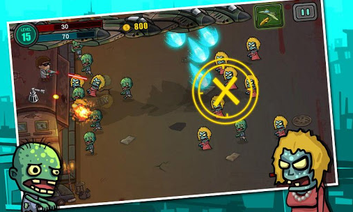點擊喪屍多次就可以把他們狠狠的射死,不會太難,殺死喪屍可賺取金幣來升級裝備,否則好難過之後的關卡。太多喪屍時,玩家可待右上角的圖案儲滿後,用轟炸機把一群喪屍炸死,好好用的呢!用完一次後要再儲存過。