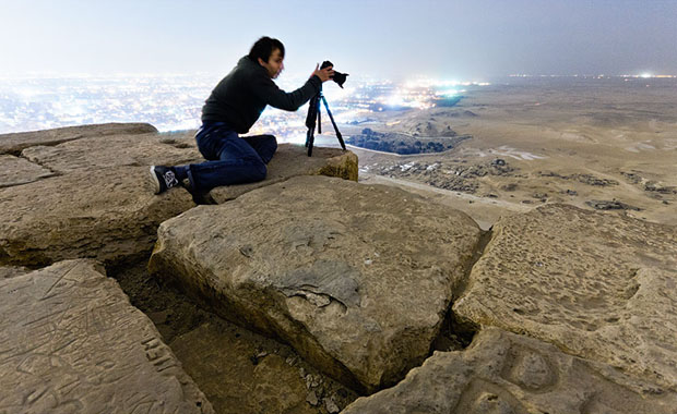 走人金字塔拍攝的最困難之處,是要避過警衞看守,如果被捉到會判入獄 1 至 3 年,所以很少人會以身示法。但攝影師 Vitaliy Raskalov 與友人 Vadim Mahorov 及 Marat Dupri 就避過了警衞的監視,在開放時間時等候 5 小時,然後待關門後才開始行動,最後爬到 146.5 米高的金字塔頂部拍下相片,並在其 LiveJournal Blog 上發布該批相片。 他們亦發現塔頂上有阿拉伯、法國及俄羅斯文字及繪圖等有趣痕跡,証明在此之前有其他人到訪。如果你是攝影師,不知道又會否有興趣走一敞呢?