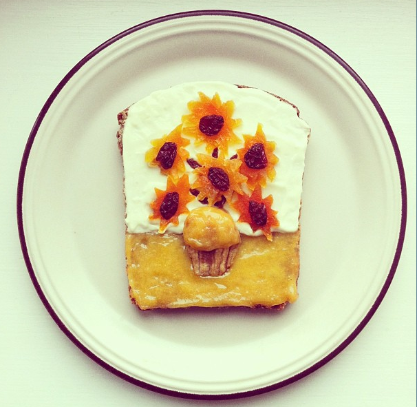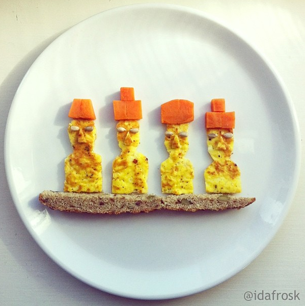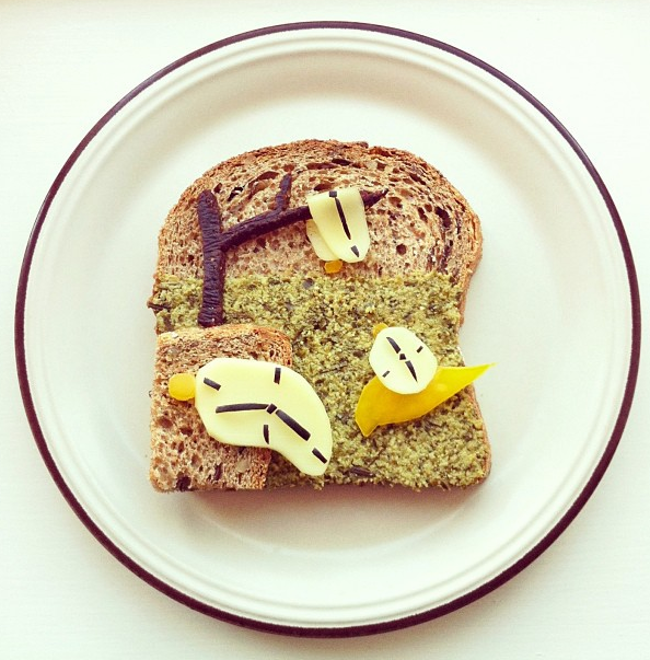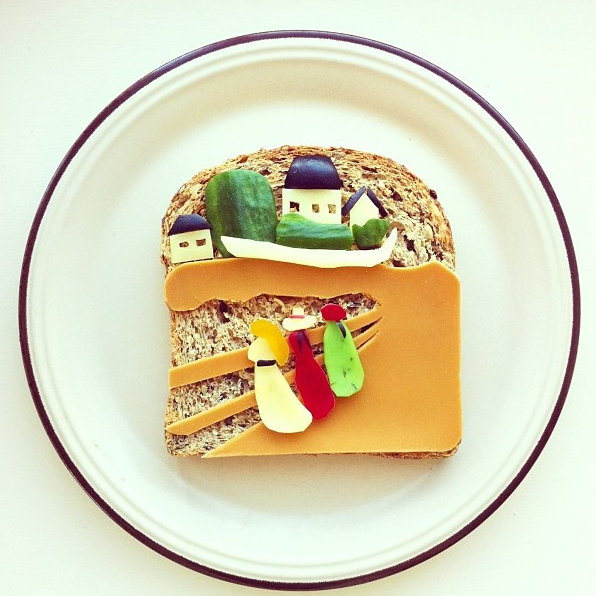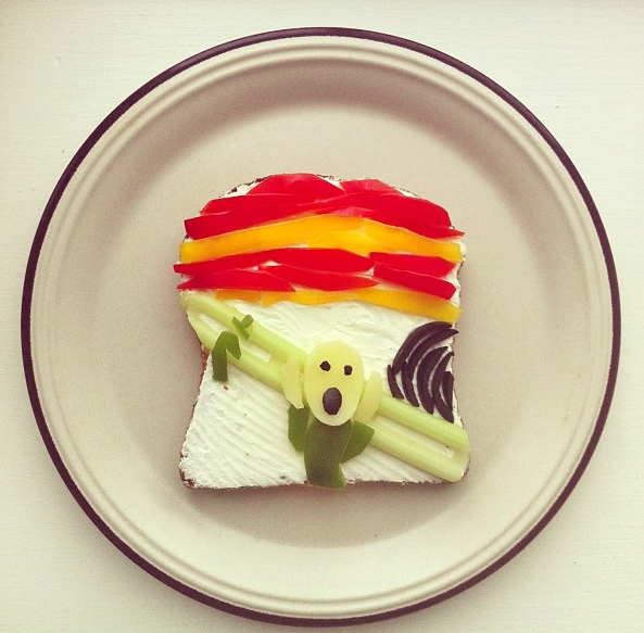 她的其中一個項目 “The Art Toast Project” 概念有趣,是在多士上重組一些名畫,效果真的不錯呢!其餘有風景、動畫、動物等不同的主題,好有創意和心思。她不是先想畫一幅畫而去找食物砌出,相反,Ida Skivenes 先考慮她想吃的東西,再嘗試砌出她的作品,總算以食為先。她的大部分作品都是早餐時創作的,通常只需 5-10 分鐘即可完成,完成作品就拍照,最後把它吃掉。在 Instagram 和網上收到正面的留言成為她的動力,從 2012 年起,她已經累積了 100,000 個追隨者,並有不少人分享她的作品。