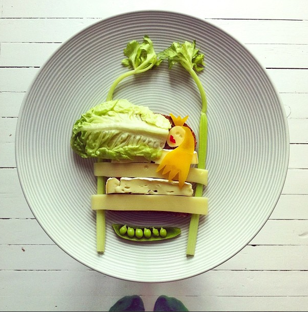 有人喜歡為另一半或小朋友整一些超靚超特別的飯盒,靚到不捨得咬下去。挪威藝術家及攝影師 Ida Skivenes 用食物「畫」出不同的東西並拍下照片上傳至 Instagram,令大家都技癢想整一些又靚又好味的食物給小朋友或另一半。Ida Skivenes 以碟作畫布,以食物作顏料,砌出不同的畫。她的 Instagram 帳戶名稱為 @idafrosk,內有大量食物「畫」,希望她在完成畫作後有把食物吃掉,不會浪費食物。