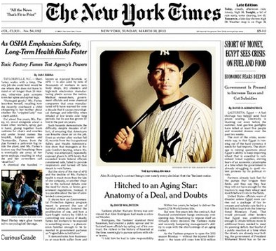 Instagram 的「應用」愈來愈廣泛,小妹有時想將來會否連証件相都可用濾鏡執下呢!聽起來好荒謬,但現在真的濾鏡處處,New York Times 決定以 Instagram 的照片作為頭版的照片,照片是攝影師 Nick Laham 用 iPhone 在更衣室拍攝的,相中人是 Alex Rodriguez,並在 Instagram 上進行編輯,Instagram 照片成功登上報紙的頭版。