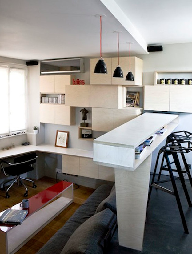香港新單位愈來愈細,所以大家都要周圍參考好多特別的設計,可擴大本應狹小的生活。以下這間巴黎公寓只有 130 呎,看起來好寬敞吧!但…… 床呢?可收起的床有什麼特別呢?最特別是床是收在吧枱之下,可把吧枱位置升起,感覺更有格調,而且自成一角,一個 130 呎單位都可以有睡房、客廳和飯廳,而且感覺都好寬敞。