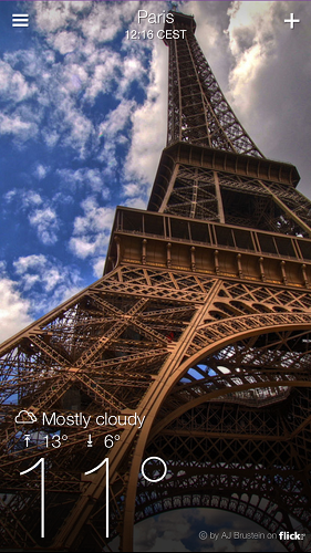 想查其他地方的天氣和圖片都可以自己打入並選擇地區,閒時想睇下風景照都可以試試,每次看照片都可能不同的,好有驚喜。而在風景照位置左右掃則可即時看到查看過的地方的資料和圖畫,另外橫放手機可以看到壯麗的畫面。