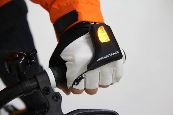 這個由 Doppelganger 生產的 LED 指揮燈以魔術貼黐在單車手套上,讓騎車人可在需要時打手號,讓其他道路使用者能夠清楚見到。用家可隨時調整 Doppelganger LED 指揮燈套件的閃燈模式,包括亮著、閃爍和隨機。使用可更換的手錶鈕型電池,在閃爍模式下約可使用 120 小時。