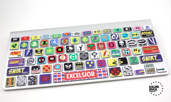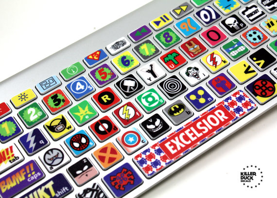 每天都要見到的辦公室、辦公桌、電腦屏幕、鍵盤…… 令人感覺十分乏味,所以不少人都會把他們變得更有趣或個人化,令自己見到這些乏味的東西都可精神一點。你怕悶又是英雄迷的話,MacBook Keyboard Super Hero Skin 可能會是你杯茶,它是一套以漫畫為主題的鍵盤貼紙,由 Etsy 賣家 Killer Duck Decals 售出,貼紙設計漫畫化並以英雄作主題,而每個圖案都跟相對的字母有關 (如 S for Spider-Man, B for Batman, V for Venom),考你是否真正的英雄迷,設計有心思又色彩豐富,英雄配上鍵盤戰士,相信能為乏味的鍵盤加入一點色彩。