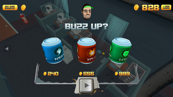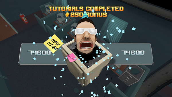 除了辦公桌、椅、櫃等,有一些東西會在辦公室上浮動,如時鐘、大金幣和咖啡壺,全部都對遊戲有幫助的,見到就盡量撞過去。另外如果你「打」到破自己紀錄的成績,Steve Snaps 會戴上 Party 帽並一臉「沾沾」;如果該關獲得較多的金幣,Steve Snaps 就會一臉如富翁的樣子,頗有趣的,不過可能大家都好想「打爆」他。除了可挑戰自己的記錄,都可以挑戰朋友的記錄,看看誰破壞力最驚人…… 可以考慮關心一下他/她。