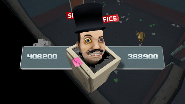 除了辦公桌、椅、櫃等,有一些東西會在辦公室上浮動,如時鐘、大金幣和咖啡壺,全部都對遊戲有幫助的,見到就盡量撞過去。另外如果你「打」到破自己紀錄的成績,Steve Snaps 會戴上 Party 帽並一臉「沾沾」;如果該關獲得較多的金幣,Steve Snaps 就會一臉如富翁的樣子,頗有趣的,不過可能大家都好想「打爆」他。除了可挑戰自己的記錄,都可以挑戰朋友的記錄,看看誰破壞力最驚人…… 可以考慮關心一下他/她。