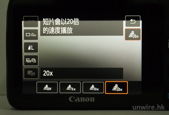 ▼ Time Lapse 模式可以有 5x、10x 或 20x 等設定,提供不同效果。