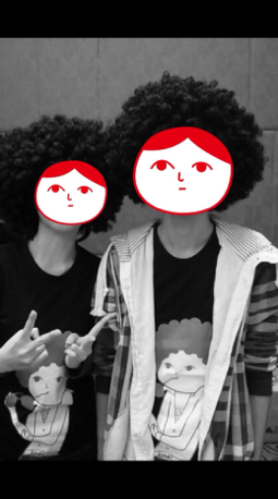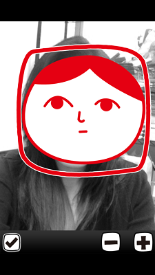有 3 個圖像更可自動感應人像,在你的臉上蓋上「白目」樣或一個可怕樣子或在拍攝的人頭上加「屎屎」,拍好後如果照片有兩個人,可按 “+” 加多一個圖像,”-” 則可減一個圖像,圖像更可拉大縮小的。