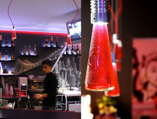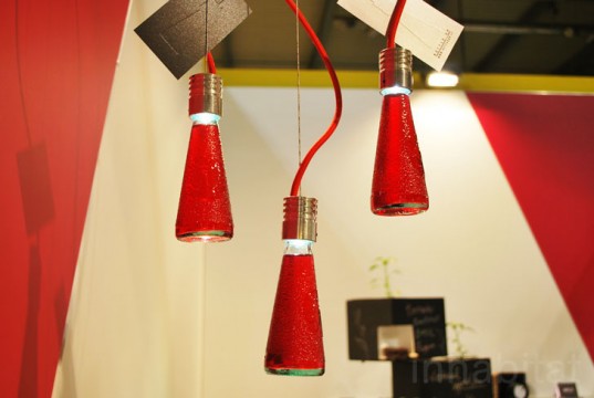 意大利設計師 Casuccio 和 Valerio 設計的 Bottle Up 吊燈將玻璃樽重用,特別製作的 LED 燈安裝在空樽,並在樽內注入香薰溶液,在 LED 的熱力底下慢慢蒸發,讓環境既有個性化的燈飾,同時滿室芳香。Bottle Up 吊燈可以配合不同大少形狀的飲品樽或花瓶使用,隨著香薰在樽內不斷蒸發或注入不同顏色的溶液,燈光的光暗和效果亦會不同,這正是 Bottle Up 的特色之一,原來環保重用的物品都可以好靚,充滿玩味。