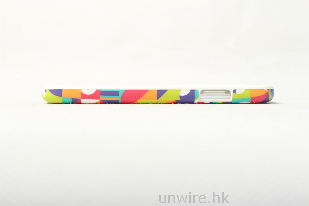 有別於波點的可愛,Geometric Series 走抽象藝術的路線,圖案的線條感覺有點複雜混亂,但有編排而設計靈感來自鑽石,是頗特別的款式。該系列同樣有 3 款,顏色和圖案都有所不同,藍色系 Crystal Kingdom 感覺有點像冰冷的雪山頗 cool 的,另有紅色系的 Pink Dimension 及彩色的 Rainbow Burst,男女合用。機殼同樣以 ABS 塑膠製,面層塗上光滑的 UV 塗層,圖案同樣耐看不易脫色。鏡頭、耳機等位置都有開口,方便日常使用。