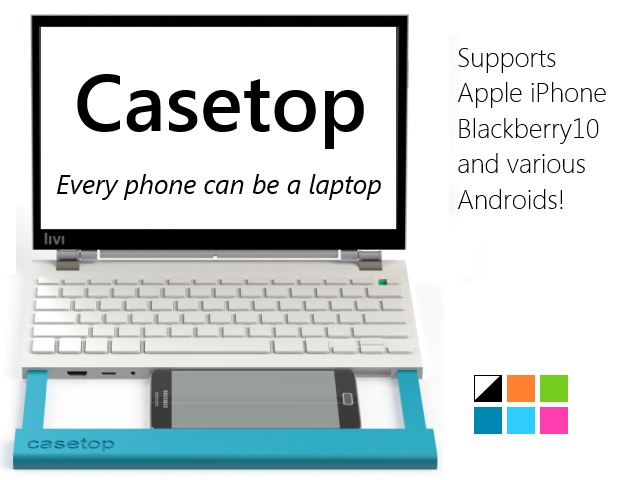 只要有創意,也可以透過 Kickstarter 網站籌募資金令新產品如期推出。今次見到由 Livi Design 設計的 Casetop,外觀像是一部 Notebook,只要將手機透過 HDMI 及 microUSB 方式連起來,便可以將手機內的運算能力帶到 Casetop 上,變成一部不折不扣的 Notebook,還可以有額外的 USB、HDMI 輸入及聲音輸出等接頭。Casetop 本身具備 11.1 吋 720p 屏幕,內置 56W 額外電池提升續航力,還有全鍵大小的 78 鍵鍵盤設計,另有一對 1W 喇叭設計,規格看似與一般 Notebook 無異。Casetop 可以支援 iPhone、BB10 或 Android 手機,但三者均設計給手機使用,應用是否對應將會是一大問題。其實早兩年 Motorola 也有推出類似產品,將 Atrix 4G 手機裝到其 Docking 上使用,不過用家對其興趣不大,隨後再沒有類似產品了。