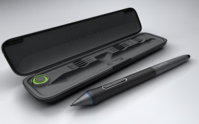 CintiQ13HD 配備的畫筆有 2,048 級壓力感應以及支援傾斜識別的功能,能好好處理精細工序,而外觀設計切合人體工學的需求。另外配備了一個筆盒,可放置專業筆及備用筆尖,以及彩色筆環等物品,方便收藏。