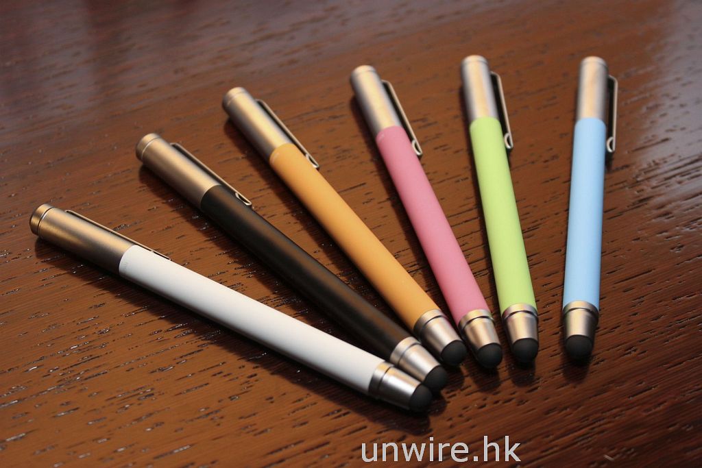 它們色彩豐富不走 cool 的路線,感覺比較有活力呢!它提供光滑柔軟的導電橡膠筆尖,寫字手感不錯的。針對 Apple iPad Smart Cover 提供多種色彩選擇以作配襯,分別為黑、白、橙、粉紅、綠及藍色可更換的筆尖。